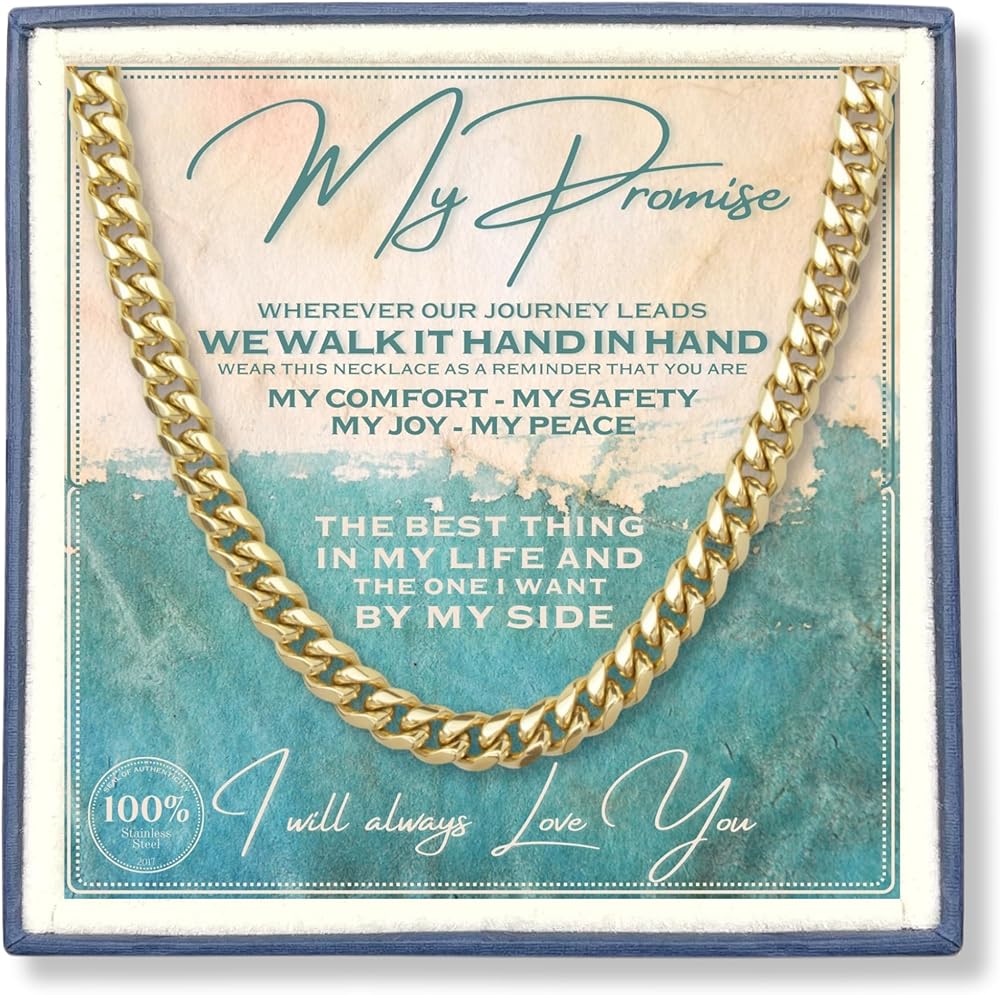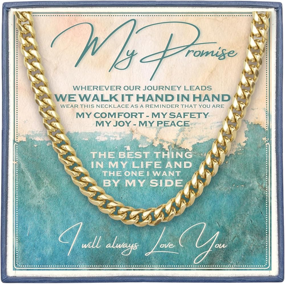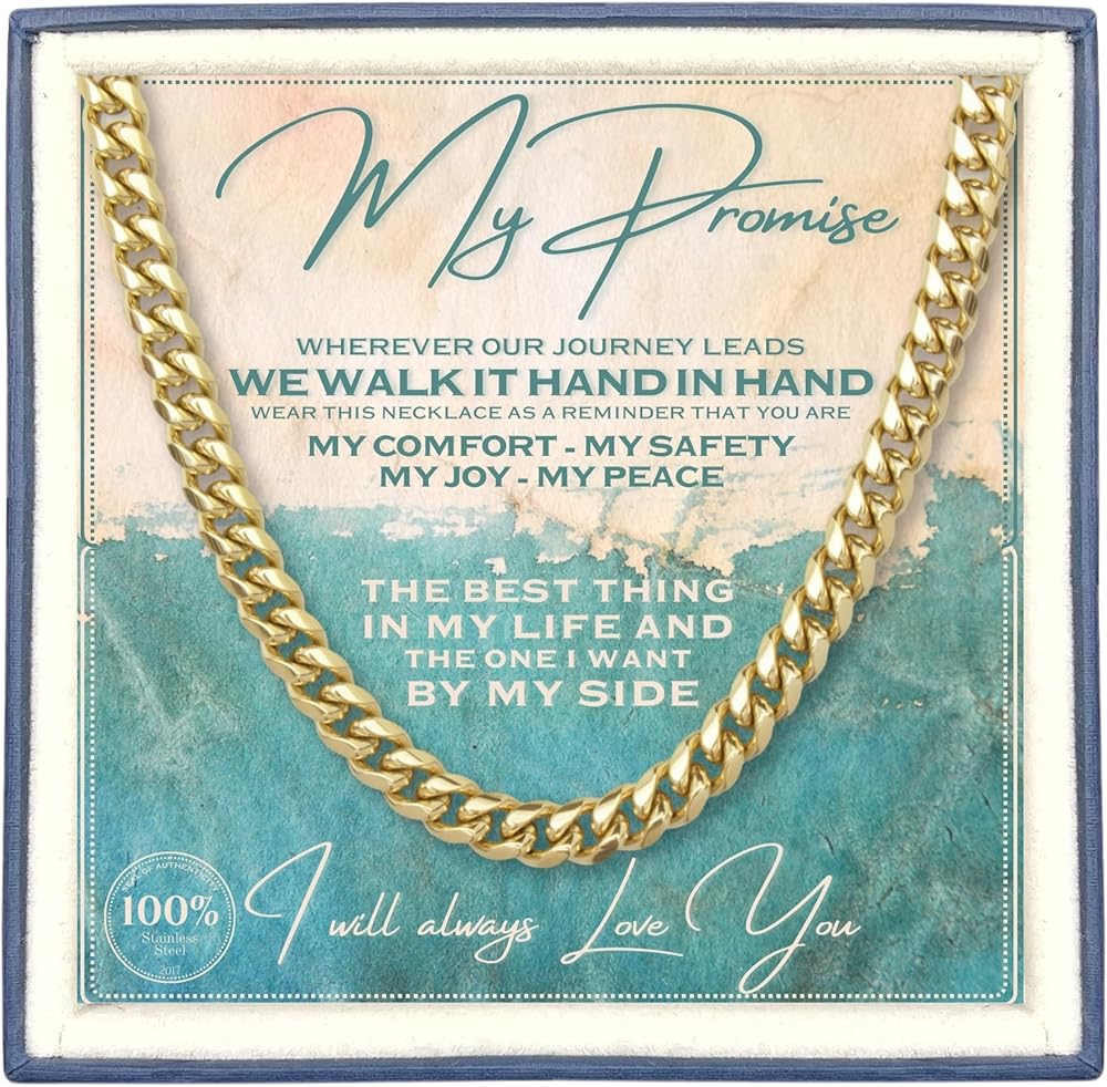 Discover the perfect blend of elegance, durability, and inspiration with the Soul Statement Men's Cuban Chain Necklace. Crafted for the modern man who cherishes quality and meaningful connections, this piece is more than just a necklace; it's a statement of love, appreciation, and strength. Ideal for those searching for gifts for men unique, these men's necklace stands out as a testament to impeccable craftsmanship and heartfelt sentiment. The link chain and secure lobster claw clasp provide a perfect fit for any wrist size, making it a versatile accessory for formal or casual dress. Whether you're seeking gifts for husband birthday or anniversary gifts for men, this love necklace is a timeless choice. Presented in a refined gift box, this necklace makes for an unforgettable husband birthday gift, boyfriend birthday gift, or an anniversary gift for him. It resonates with those looking for cool birthday gifts men, anniversary gifts for husband, and even cool gifts for adult men. The Soul Statement necklace speaks to the heart, making it a perfect choice for romantic gifts for him, sentimental gifts for him, and i love you gifts for him. It's a cool birthday gifts men will treasure, making it an i love you gifts for him or 10 year anniversary gifts for him. Our dedication to quality and customer satisfaction ensures that every necklace is a symbol of enduring love and faith. Whether you're marking a special milestone like a 1 year (or 1 month) anniversary gift for boyfriend or a 10 year wedding anniversary gift for him, this necklace will be a treasured piece of men's jewelry. It's also an excellent choice for those searching for gifts for husband, cool gifts for boyfriends birthday or a cute gifts for son to say I love you forever bracelet. From birthdays to best husband anniversary gift, this necklace is the ultimate in cool men birthday gifts and best husband anniversary gifts from wife.