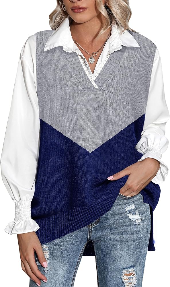 【Comfy Fabric】: Women's sweater vests made of high-quality fabric are soft, skin-friendly and stretchy. Please size down as this vest runs on a oversize fit. 1 x Sweater vest, not including the shirt