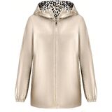 This women's jacket is designed with a stylish mid-length cut, featuring an adjustable drawstring hood for personalized comfort and protection. Practical side and front pockets offer easy access to essentials, while elastic cuffs ensure a snug fit and freedom of movement. Perfect for layering and versatile enough for any occasion, this jacket combines functionality with fashion.