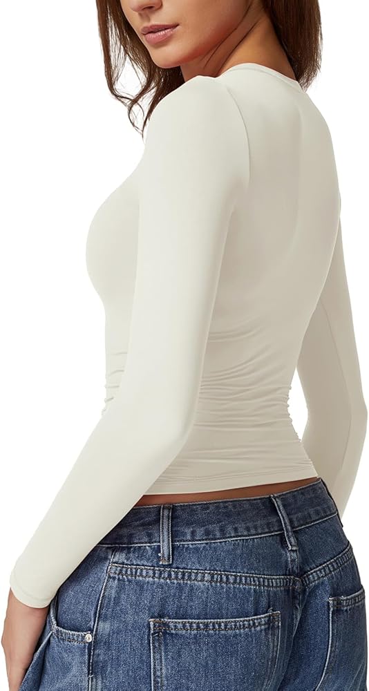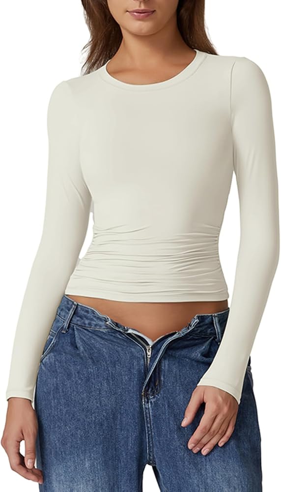 Every Day Slimming Fitted Long Sleeve Basic Tees: Crew neck slim fit tops, Compression skin tight shirts, Full sleeve casual tops, Full length undersrubs,Ruched Tee Shirts