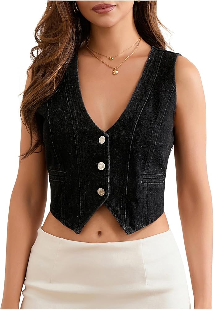 Notes: We provide Blue, Black and other multiple colors for women button down denim vest tops. Please carefully check the size charts before ordering, which are different from Amazon size charts.