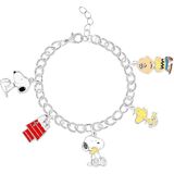 Officially Licensed Peanuts Merchandise: Show your love for the Charles M. Schulz classic wearing a Peanuts bracelet with 5 distinct charms that include Woodstock, Charlie Brown, Snoopy hugging Woodstock, Snoopy sitting, and Snoopy atop his doghouse