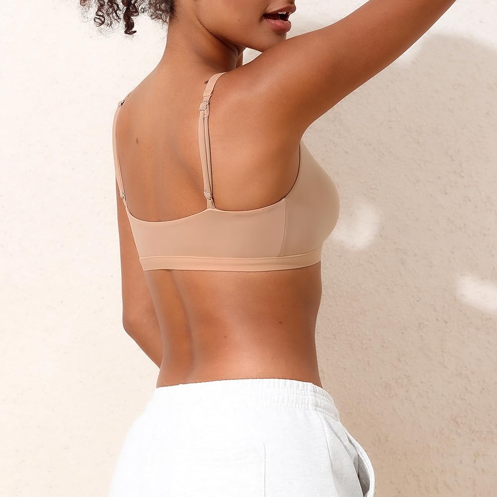 Scoop neck bra: The scoop neckline offers a modern and elegant look, perfect for layering under various outfits or wearing on its own. It features adjustable straps for a personalized fit