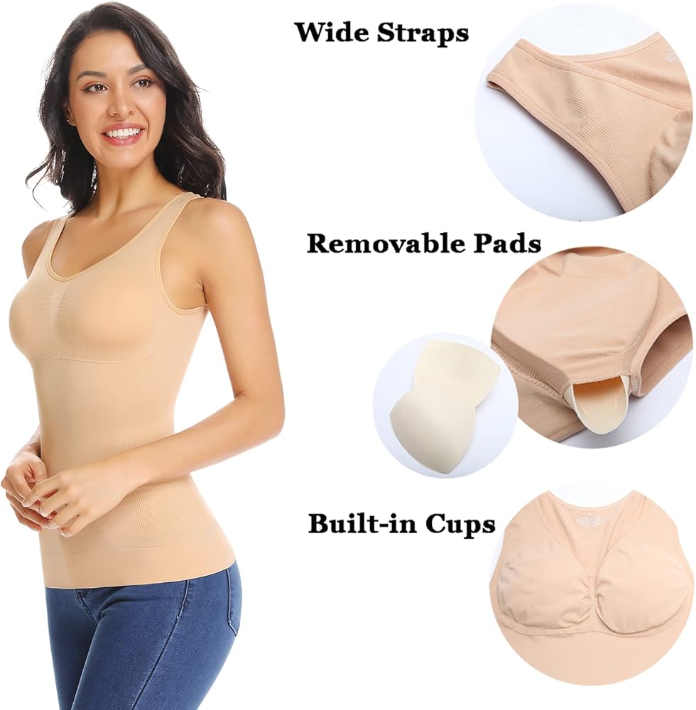 ✅Note: This cami top is not a firm tank top nor a tighter shaper as you expected, it's the moderate tummy control cami shaper, but its does the job of shaping your waist and hips. If you are busty women,you can choose remove the padding and wear your own bra.