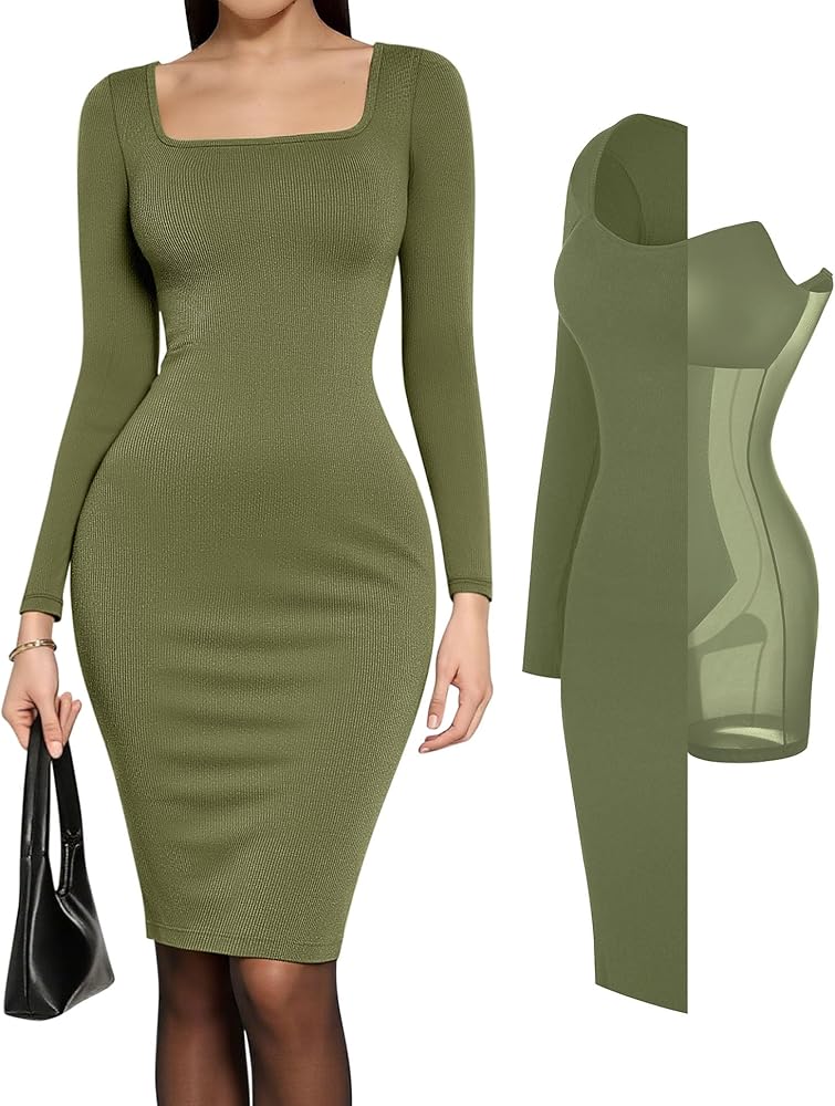 Unique Built In Shapewear Design: This is not a simple Bodycon midi dress, it is a fitted dress with a built-in shapewear. In this way, you don't need to wear bra and panties, this shapewear dress supports your chest and hips for an hourglass figure