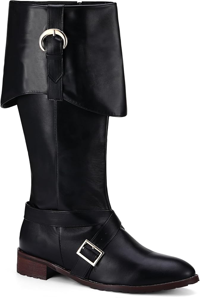 Authentic Vintage Design: featured with antique buckles and classic color, these boots inspired by the Captain of Caribbean Pirate. Offering an authentic medieval look and giving it a true vintage feel. Ideal for festivals and replica costumes, these boots are your go-to for an authentic look