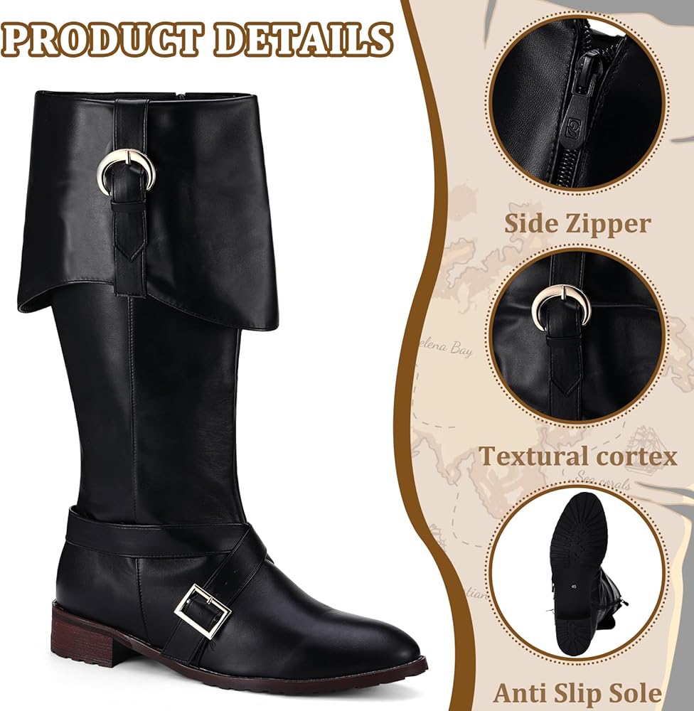 Wide Application: our pirate costume boots are ideal for various pirate themed parties and events, such as Halloween party, pirate themed birthday parties, pirate cosplay parties, Halloween nights, masquerade, American colonists cosplay, medieval renaissance viking party and so on