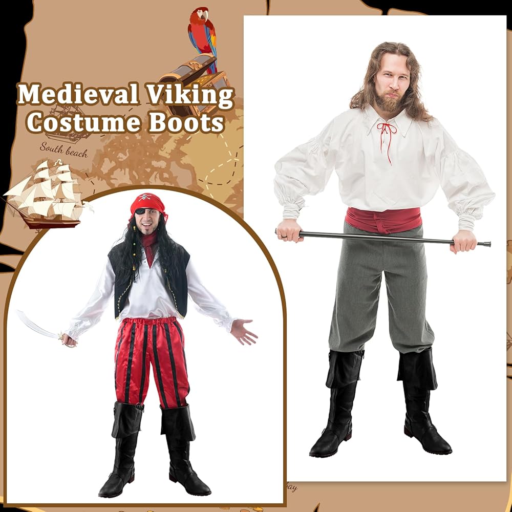 Caribbean Pirate Boots: you will receive a pair of renaissance pirate boots, which are the ideal complement to a pirate outfit, whether you're dressing up for Halloween, Cosplay or a themed party. Add a touch of history to any outfit