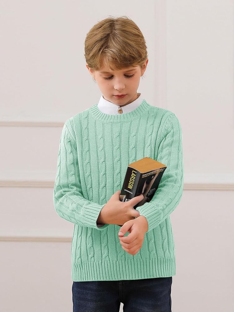 Features: Long sleeve knitwear top for boys and kids, drop shoulder, round neck, ribbed cuff and hem, thicken twist knitted, soft & warm jumper top for teen kids.