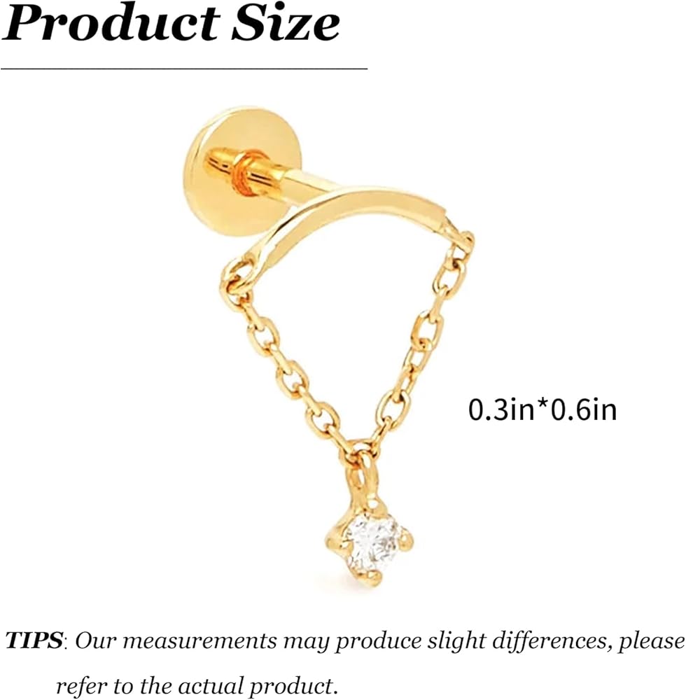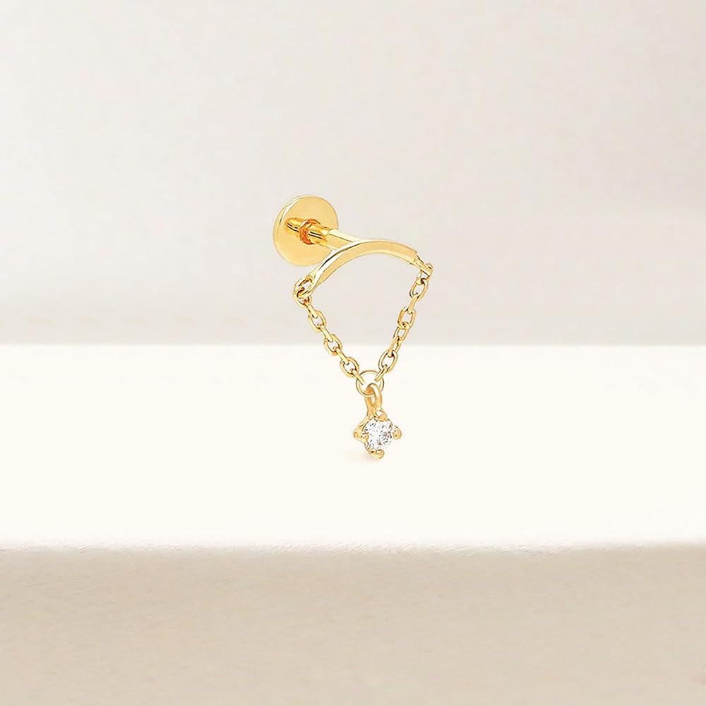 Hidden Helix Earring Dangle Threadless Flat Back Earrings for Women Helix Piercing Jewelry Hypoallergenic Cartilage Earring for Multiple Piercing Small Flatback Stud Earrings Womens Gifts for Christmas