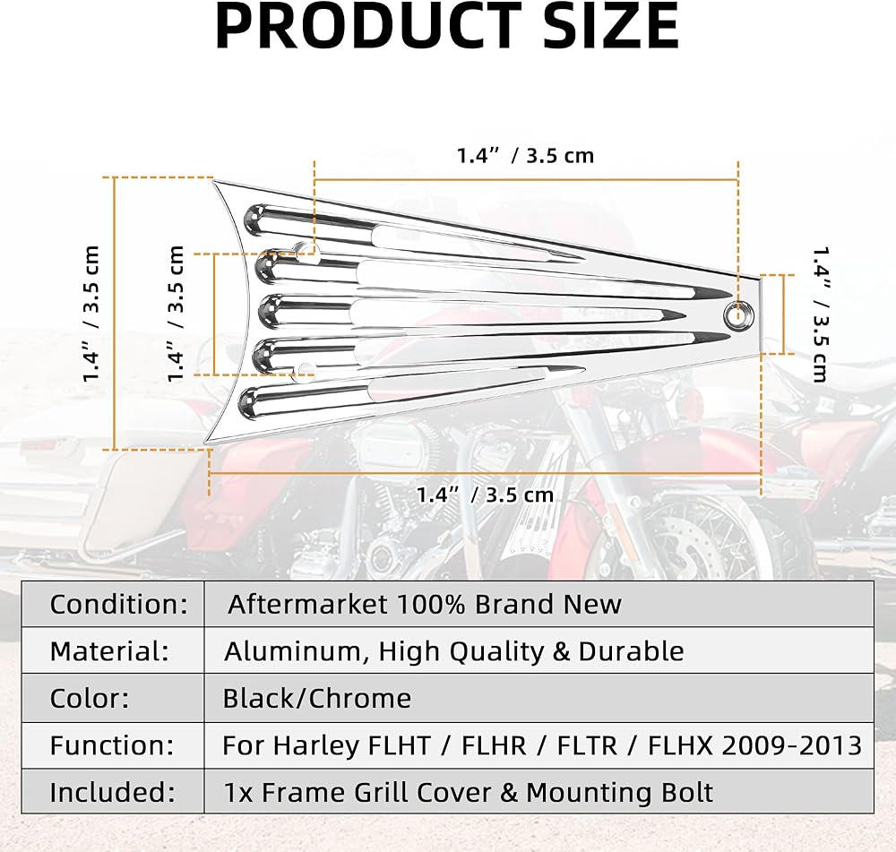 Fitment: This Radiator Frame Grill Cover Guard Fit For Harley Electra Glide, Street Glide, Road King FLHT / FLHR / FLTR / FLHX 2014-2016 Models.