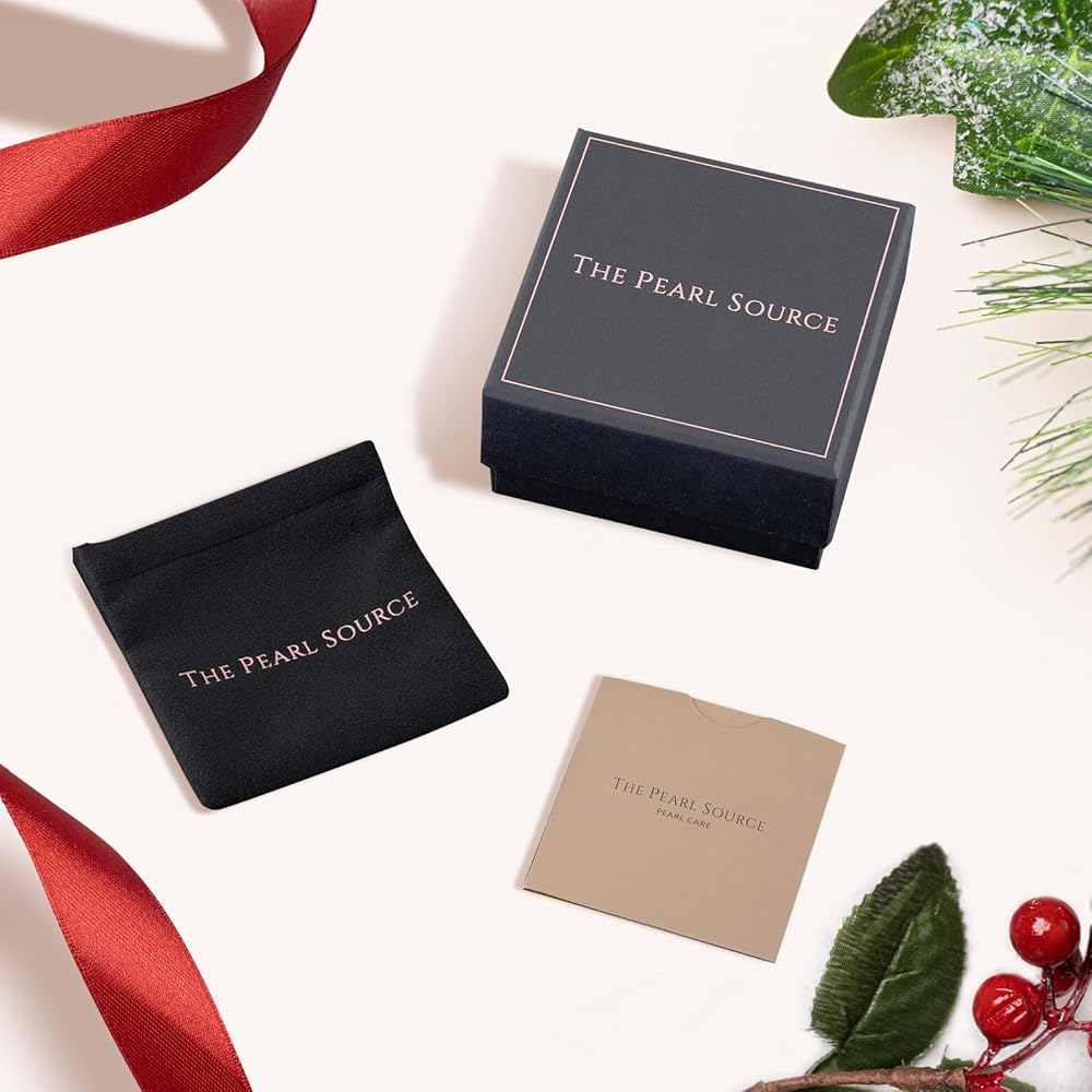 The Pearl Source 14K Gold 5.5-6.0mm Round Genuine Black Japanese Akoya Saltwater Cultured Pearl Necklace in 17" Princess Length for Women