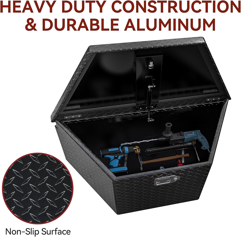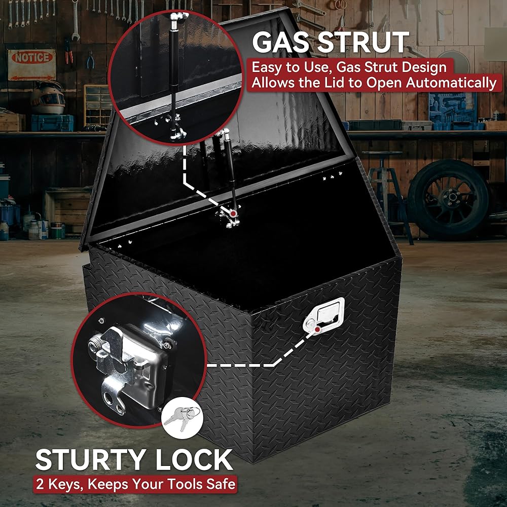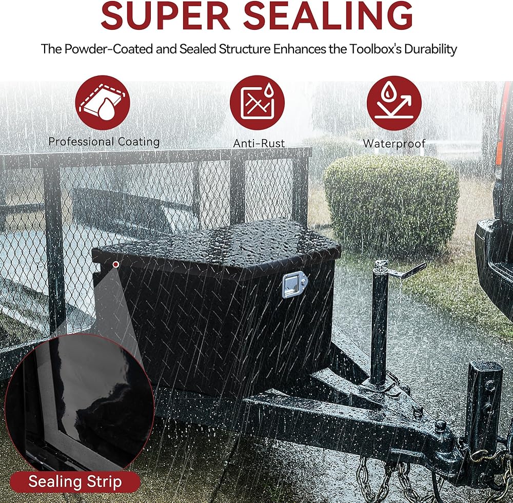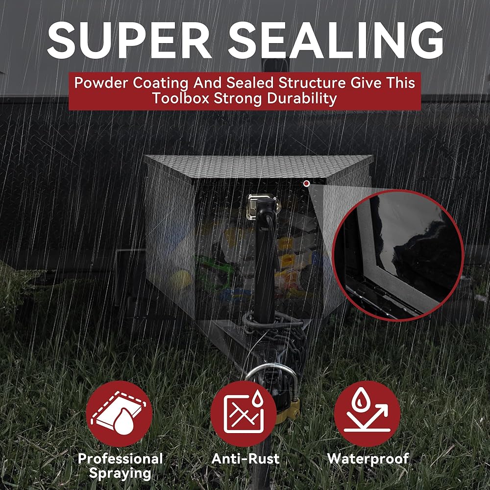 WEATHER PROTECTION:This trailer storage box is designed with sealing strips and professional powder coating provides effective water and rust resistance, keeping tools dry and safe from wet environments