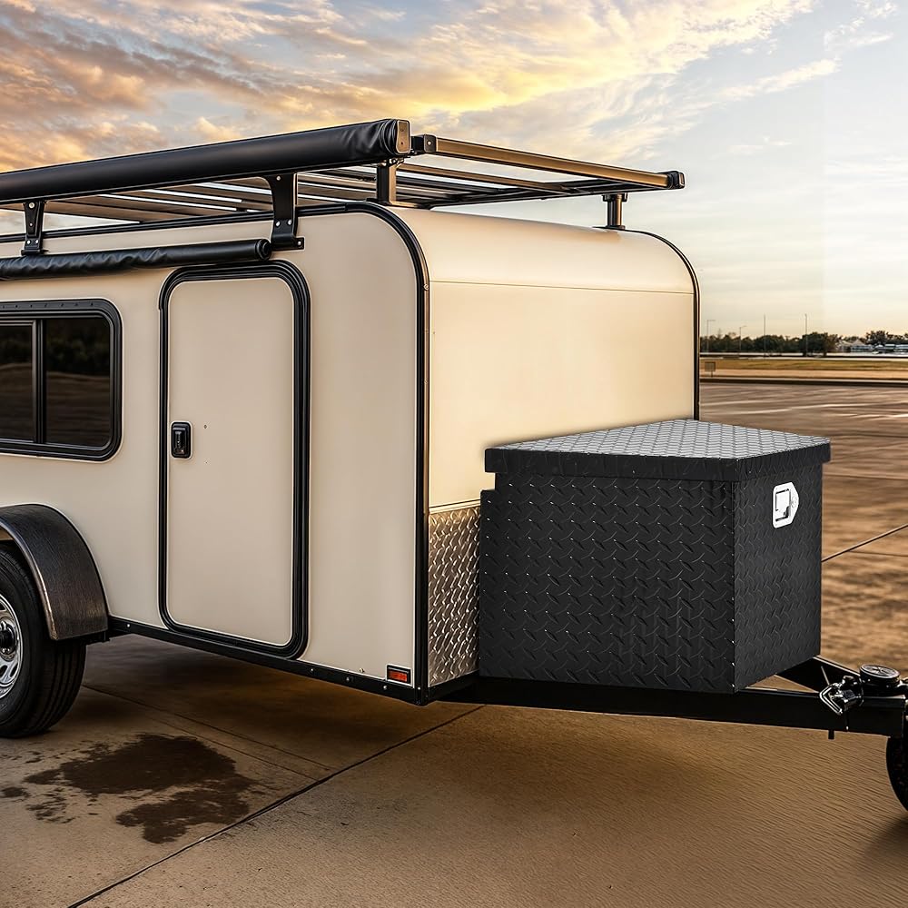 YITAMOTOR 33 Inch Trailer Tongue Boxes, Heavy Duty Aluminum Trailer Tool Box, Diamond Plate Storage Box, Waterproof Trailer Box for Pick Up Truck Bed, RV Trailer with Lock and Keys