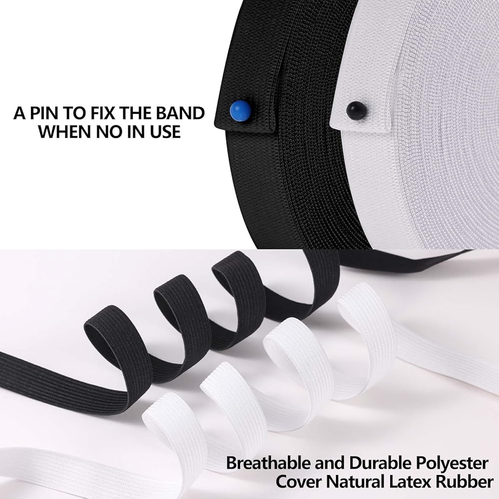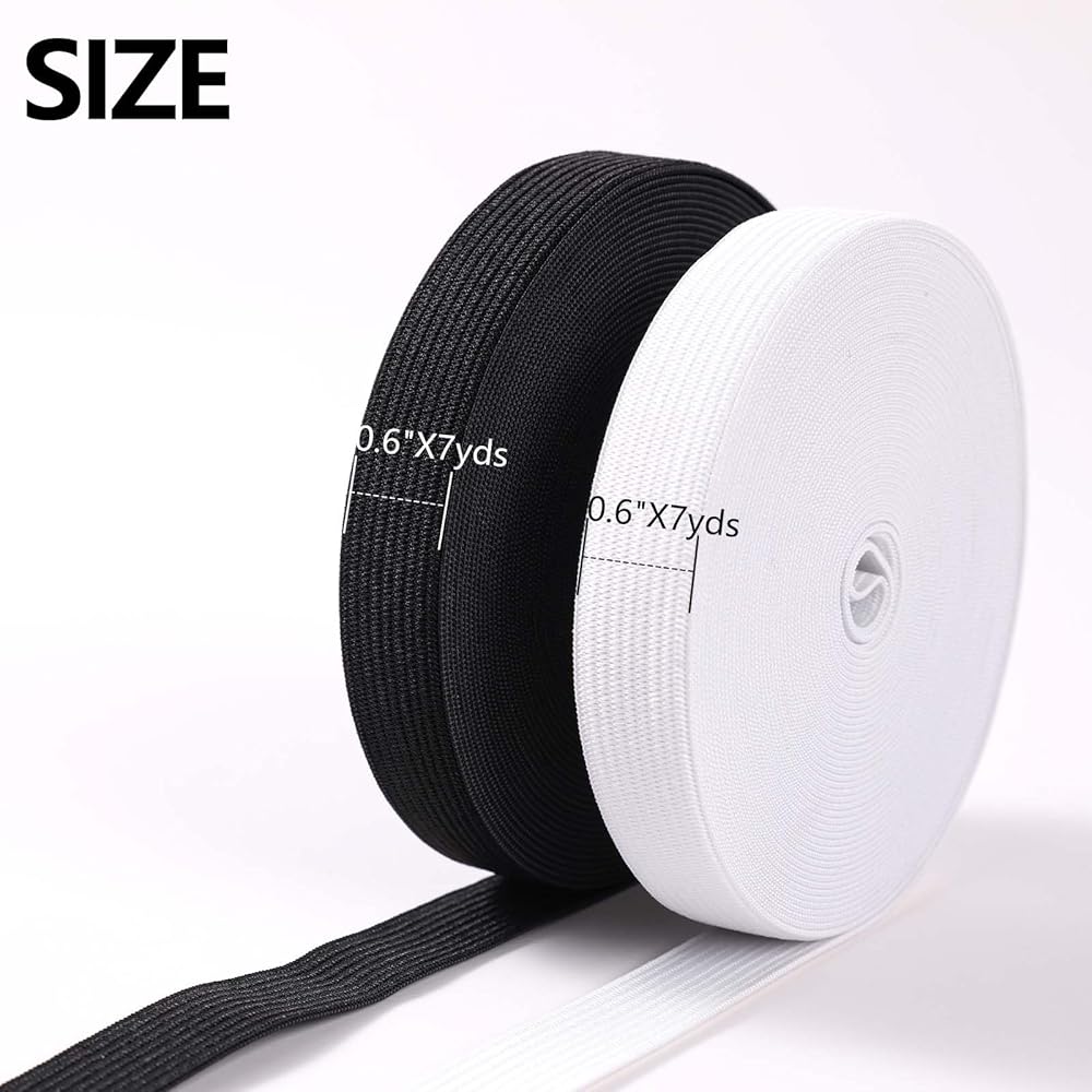 XKDOUS Elastic Band for Sewing, 0.6 Inch 14 Yards 2 Roll Knit Elastic Bands for Sewing Waistband and Pants Waist, High Elasticity(7 Yards White, 7 Yards Black)
