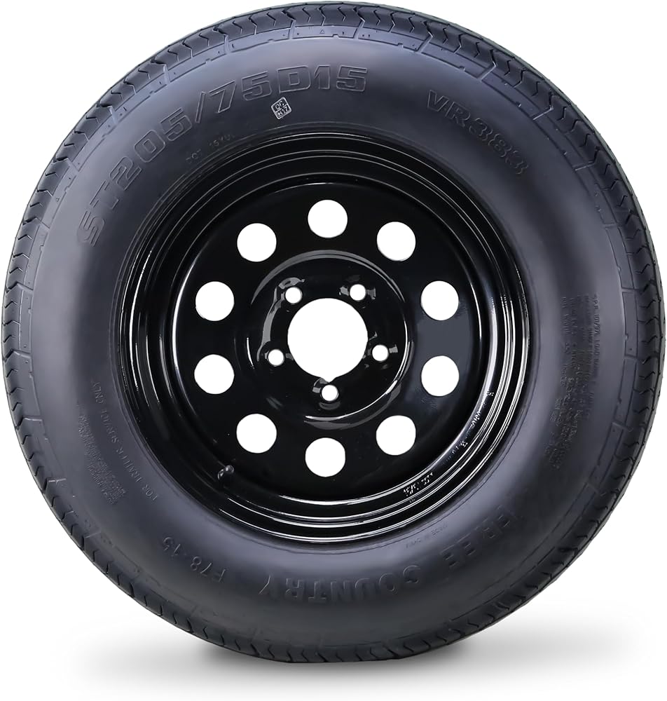 DURABLE: 7.4mm deep tread depth vs 5.6 mm of other cheap competitors, durable and longer mileage life. PERFORMANCE: 6 ply rated, load range C. Load Index:107. Speed rating L--up to 75mph. WHEEL DETAIL: 5 Lug on 4.5" bolt pattern, offset: 0, style: Black Mod. SAFETY CERTIFIED: Meets or exceeds applicable DOT standards to provide dependable performance season after season for hauling cargo safely.