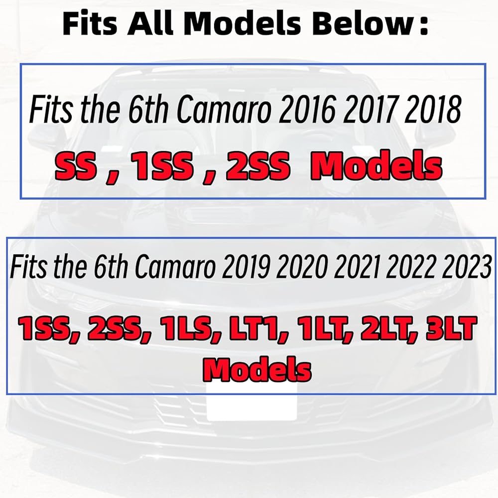 - Compatible with 2016 2017 2018 2019 2020 2021 2022 2023 2024 Chevrolet Camaro SS/ 2019 2020 2021 2022 2023 2024 LT LS RS , (Won't Fit ZL1 Models)