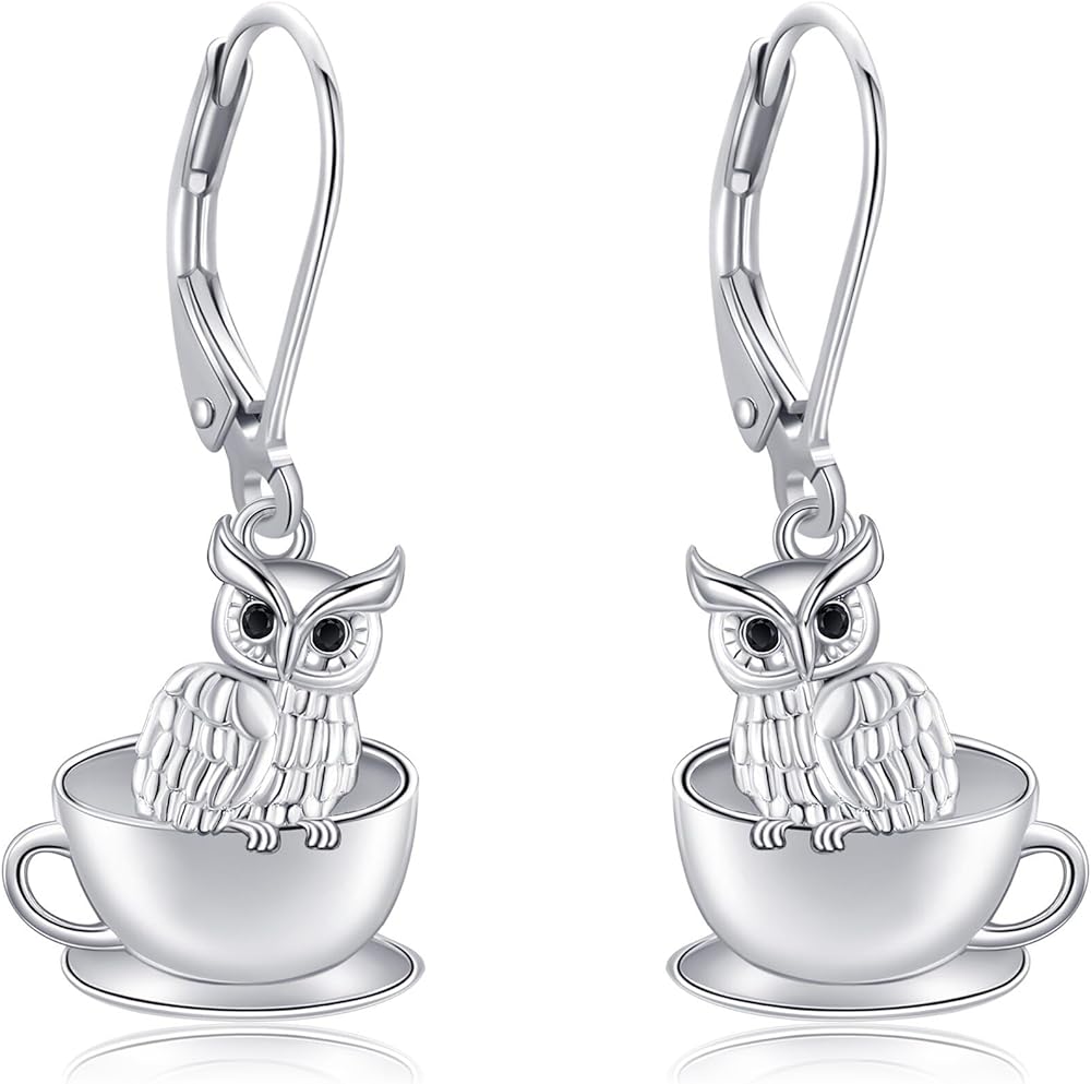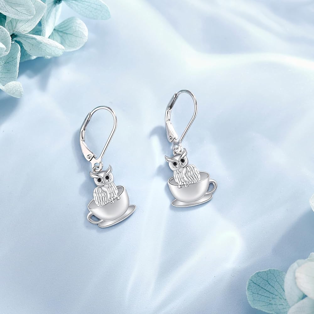 Cat Earrings 925 Sterling Silver Cup Cat Dangle Drop Earrings Cat jewelry Gifts for Women
