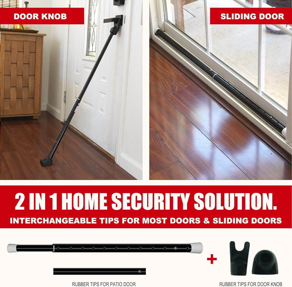 Easy to Use & Setup: Whether used as a patio door security bar or door jam, install takes just seconds and instantly adds an extra layer of protection! Easily props under the door knob and easy to remove. Door blocker rod can also be easily adjusted.