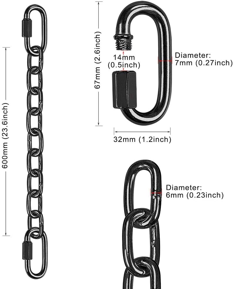 BeneLabel 2Pcs 28 inch Black Heavy Duty Hanging Chains with 4 Carabiners 1000 LB Capacity Hanging Hammock Chair Hardware Extension Chain for Swing, Hanging Chair, Punching Bags, Indoor and Outdoor
