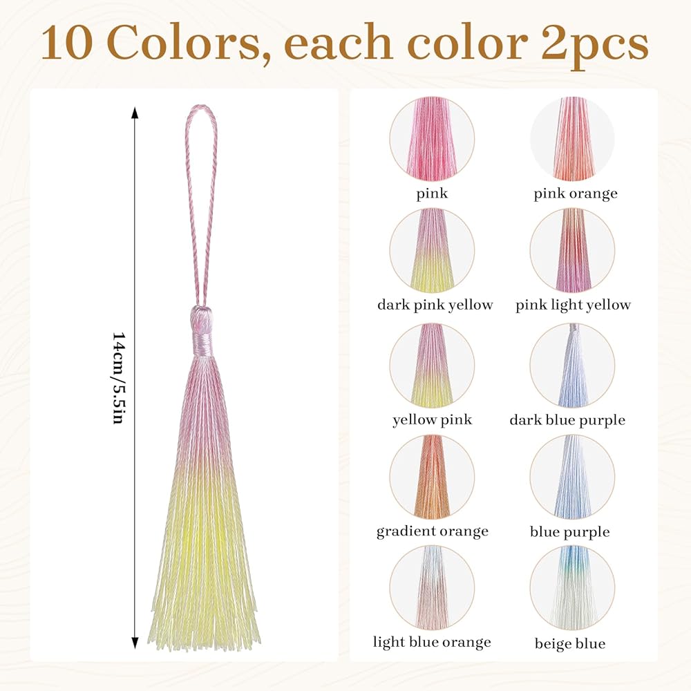 【Colorful Selection】You will receive a diverse set of 20 bookmark tassels, with 2 units in each of the 10 available colors, offering a generous quantity for various crafting needs