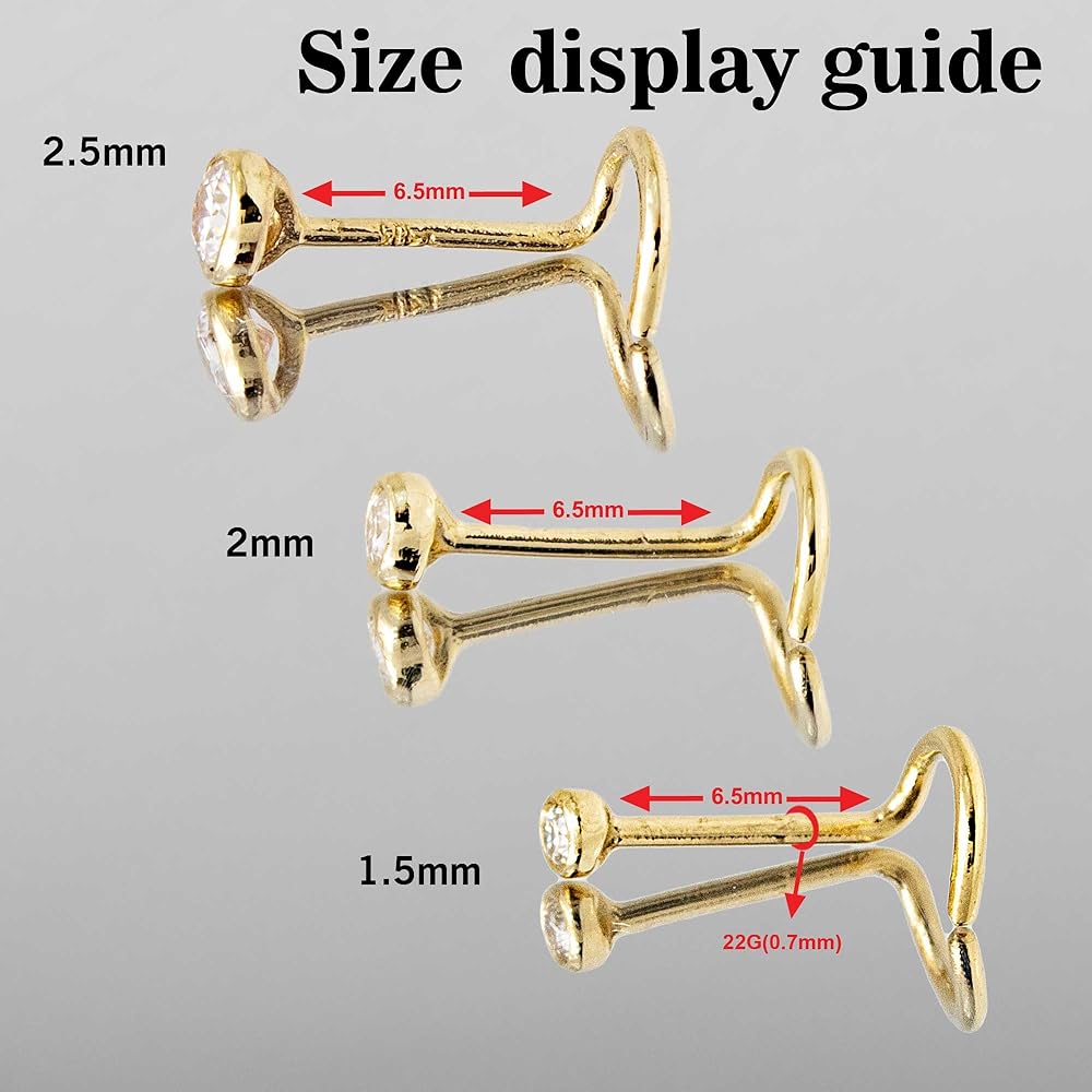 This listing is for 1 piece of Solid 14K Yellow Gold or 14K White Gold 22G Nose Screw(Cork Screw) Stud Ring with your choice of Alexandrite Gemstone in size 1.5mm(0.015ct); 2mm(0.03ct); or 2.5mm(0.07ct)