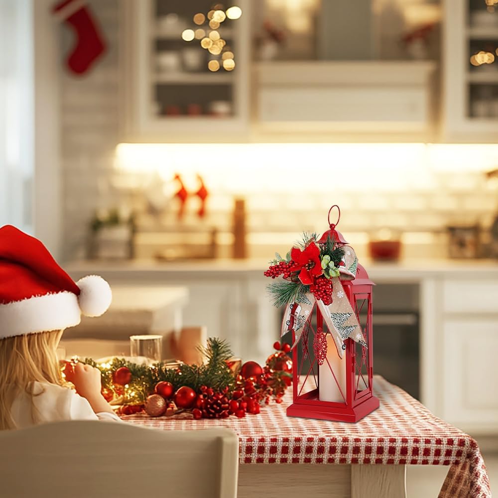 🌟EYE-CATCHING DECORATIVE CHRISTMAS LANTERN - DECORKEY Christmas lanterns are a sure way to bring a touch of rustic charm to any room while creating a warm glow that feels like this home. A must-have for your holiday decoration collection for year-round use. The lantern attaches a Christmas teardrop wreath with red berries, pine cones & green plants, creating a joyful and dreamlike Christmas atmosphere