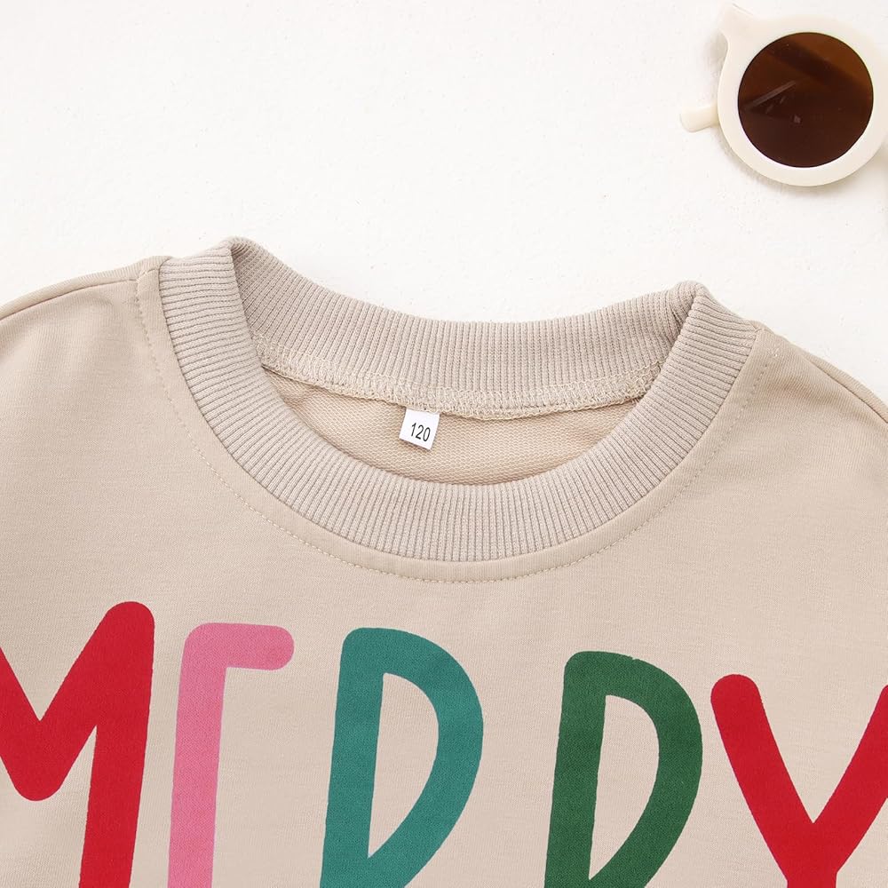 🎄Package: 1 x Boys Girls Christmas Outfit "MERRY and BRIGHT" Letter Print Pullover Tops Long Sleeve Merry Sweatshirt.
