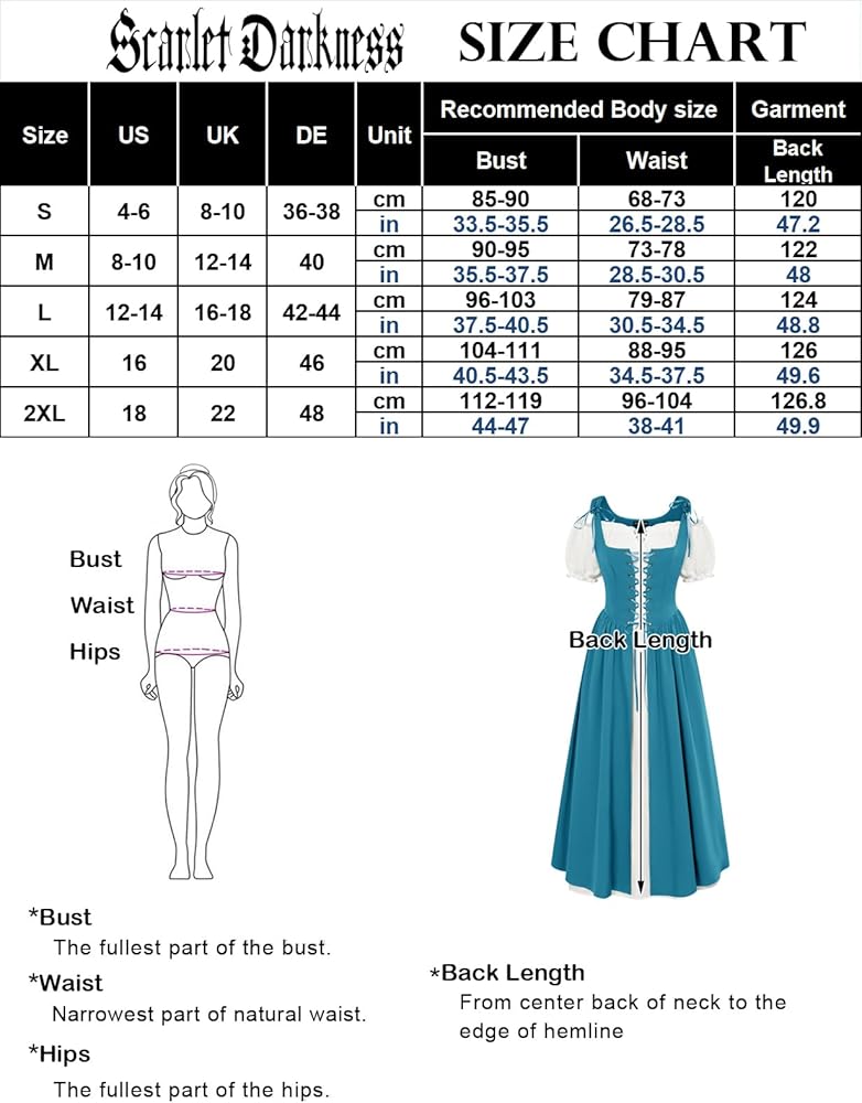 Fabric: Made from a soft and comfortable poly-cotton blend material, this dress is perfect for all-day wear at Renaissance festivals, weddings, Halloween parties, and more