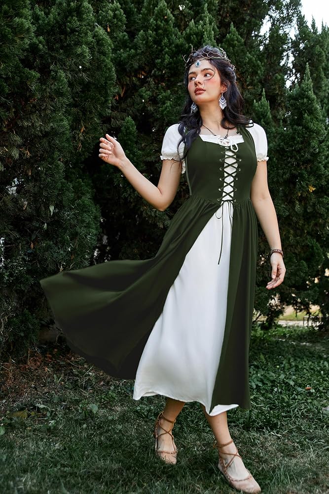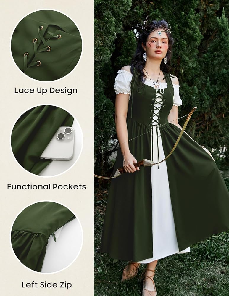 Style: Show your vibrancy with this stunning Renaissance costume set, add a touch of elegance and sophistication to your look. This is the type of dress to run through a flower field barefoot in
