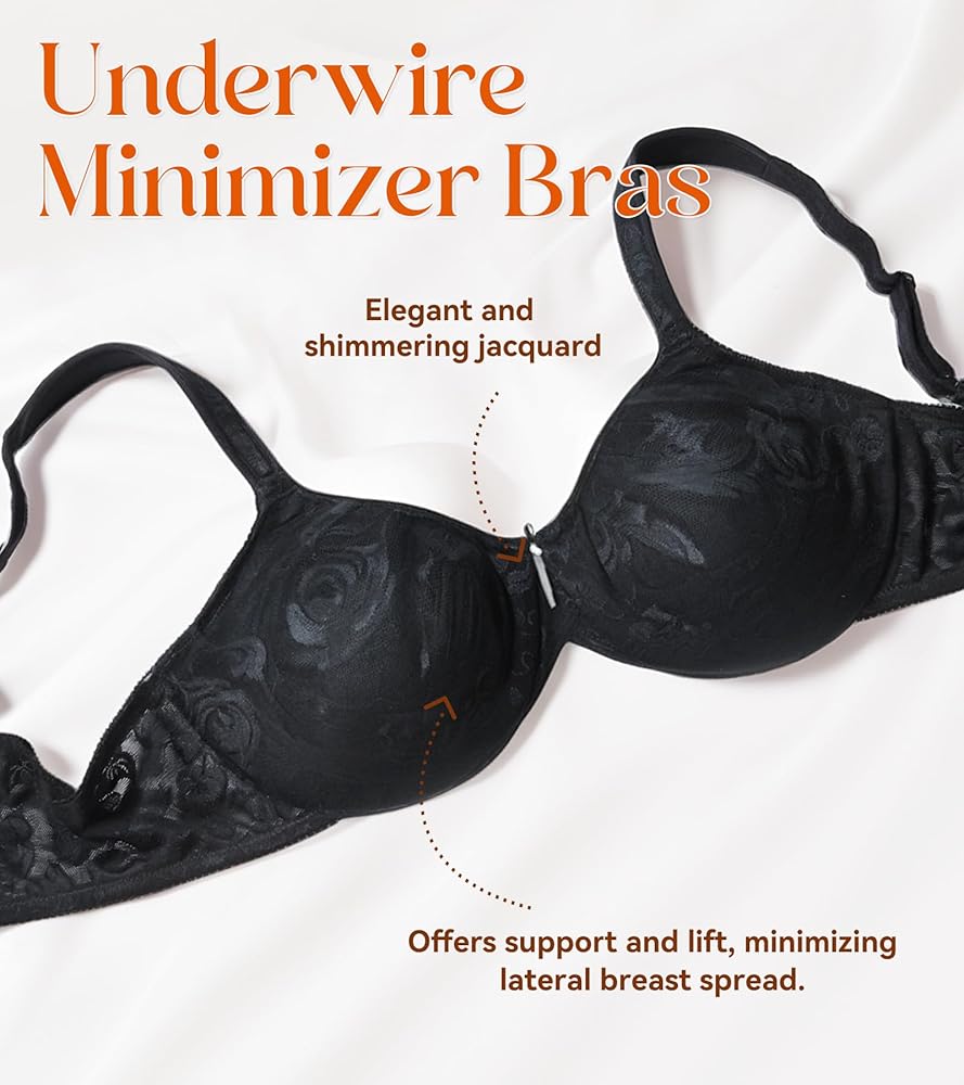 Minimizer Design: Featuring a minimizer design, the non-padded underwire full coverage bra shapes and contours the bust, providing a natural look and creating a minimized effect.