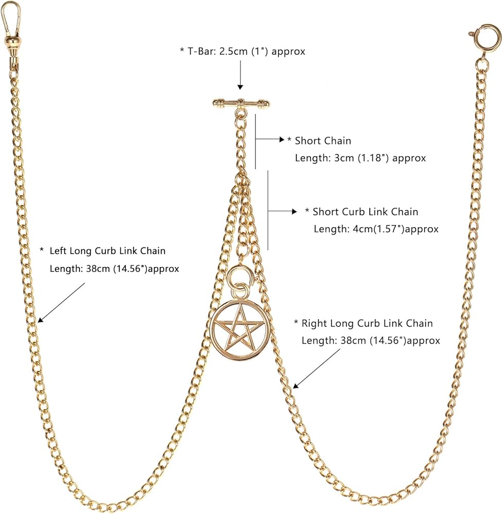 UNIQUE DESIGN: Classic Pocket Watch T-Bar Chain with Swivel Clip, suitable for vest or formal wear, with ROUND HEAD FINISHING design, prevent the clothes from damage by the T Bar.