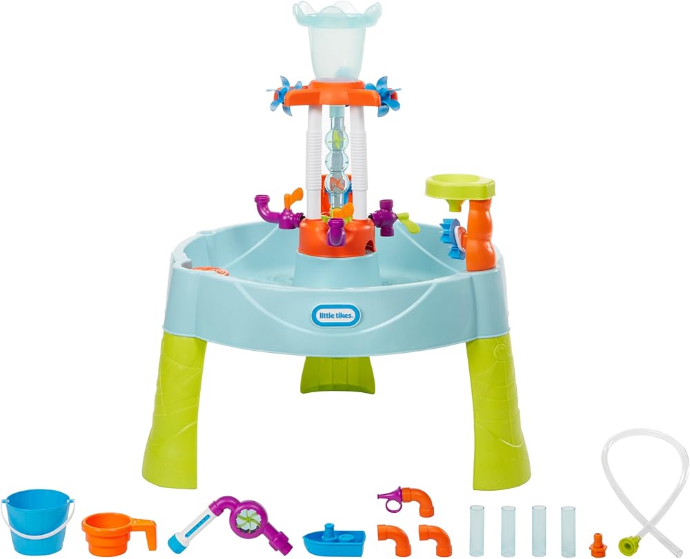 Looking for the perfect water table for your kids? Try the Little Tikes Flowin' Fun Water Table, with its multiple play stations and 8 interchangeable pipes, fittings, and faucets. Kids can create their own wacky waterworks, watch water cascade down it, and then mix things up. Try connecting the Little Tikes Flowin' Fun Water Table to your garden hose, or pouring water into the central tower, to make a real splash.