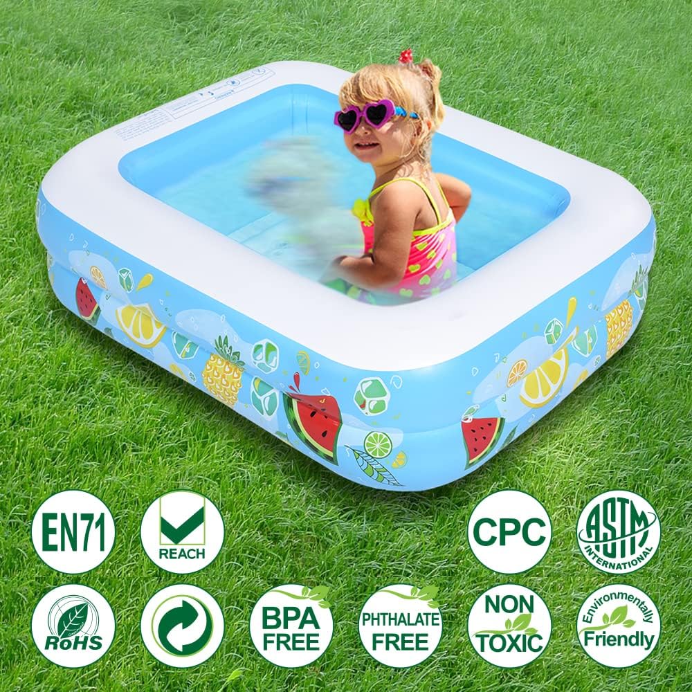 Water Fun and Cool Summer: The 2-floor inflatable kiddie pool is inflated to a size of about 47 inches long, 35 inches wide and 13 inches high for durability. It is the best choice for kids to enjoy indoors and outdoors, defeating the hot summer days. This plastic pool can also be used as a baby pool and a ball pit.