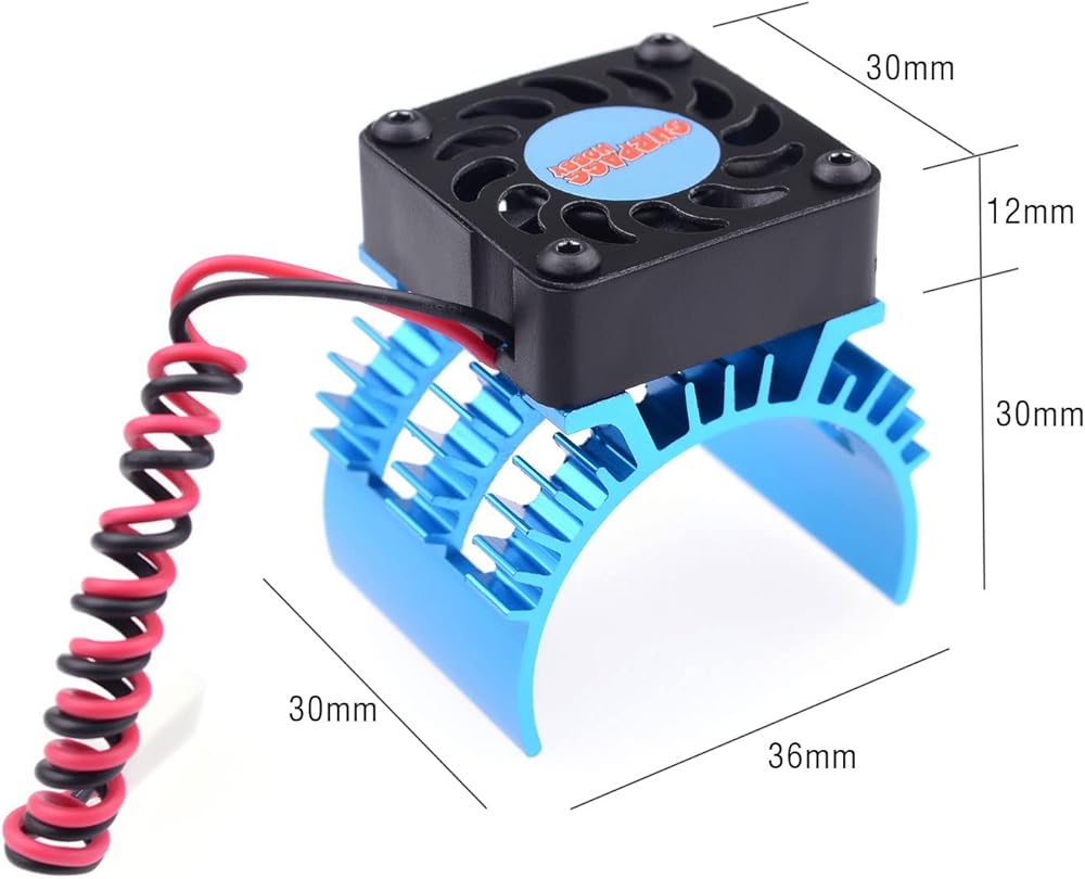 Specification:Item Type: RC Motor Heatsink with Cooling FanMaterial: Aluminum Alloy + PlasticOptional Color: Red , Orange , BlueTotal Size: Approx. 55 * 30 * 30mm / 2.17 * 1.18 * 1.18inchCooling Fan Size: Approx. 30 * 30 * 10mm / 1.18 * 1.18 * 0.39inchWeight: Approx. 26gApplicable Motor: for 36 size Motor 540 / 550 MotorApplicable RC Car: for HSP / Redcat / AXAIL SCX10 / D90 / D110 / Tamiya CC01 1/10 Scale Electric RC CarCooling Fan:21000RPMPackage list:1 * Motor Heat Sink with Cooling FanNote: