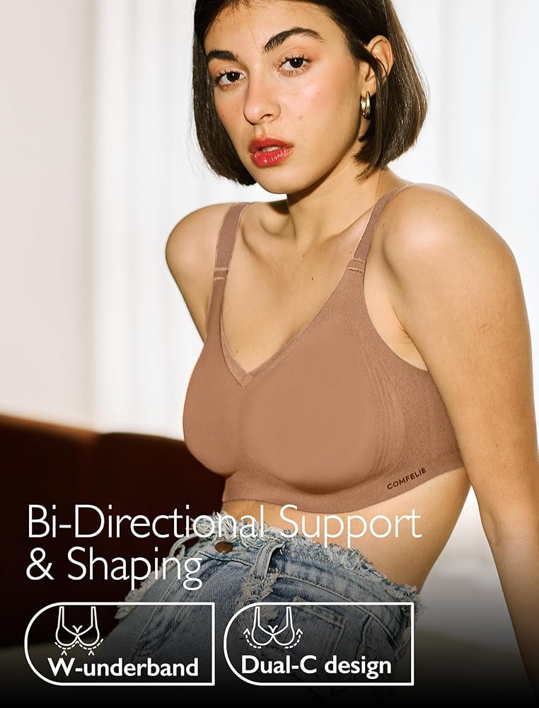 【No Underwire Support Bra】The new W-underband and dual-C design for bi-directional support and shaping to return the breasts to a comfortable position