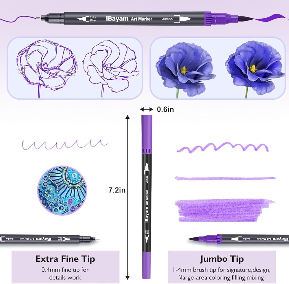 - DUAL TIPS markers: Each marker features a dual tip design with a fine tip for detail work and a brush tip for filling in larger areas