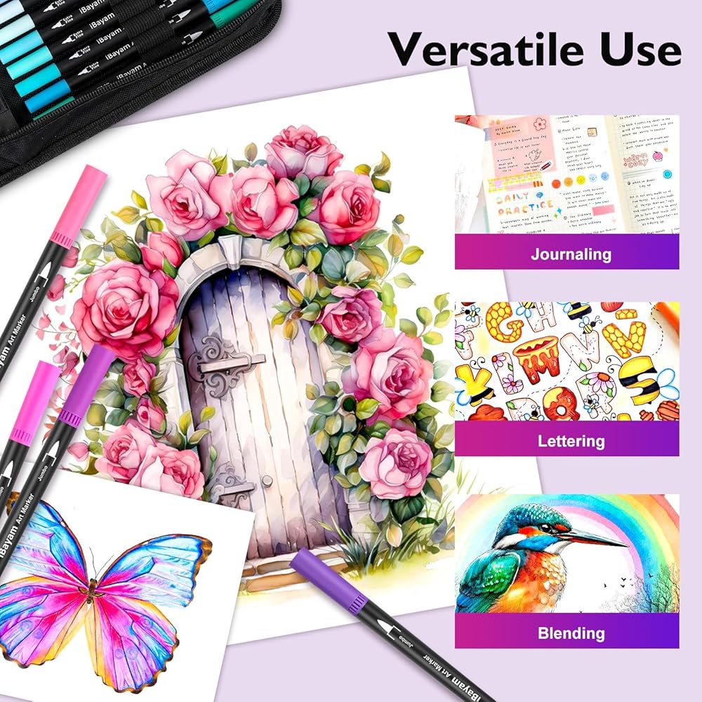 iBayam Art Markers Set, 72 Colors Dual Tip Brush Pens for Adult Coloring Book, Note-taking, Calligraphy, Journaling, Sketching & Lettering, with Gift Case for Kids Adult Teens School Art Supplies