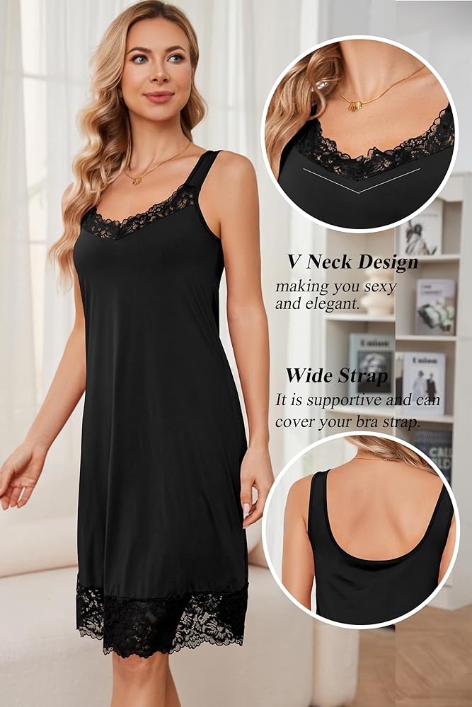 Feminine Lace Trim: The intricate lace pattern of the slip dress adds a touch of sophistication to any outfit, making it perfect for special occasions or simply dressing up your everyday look.