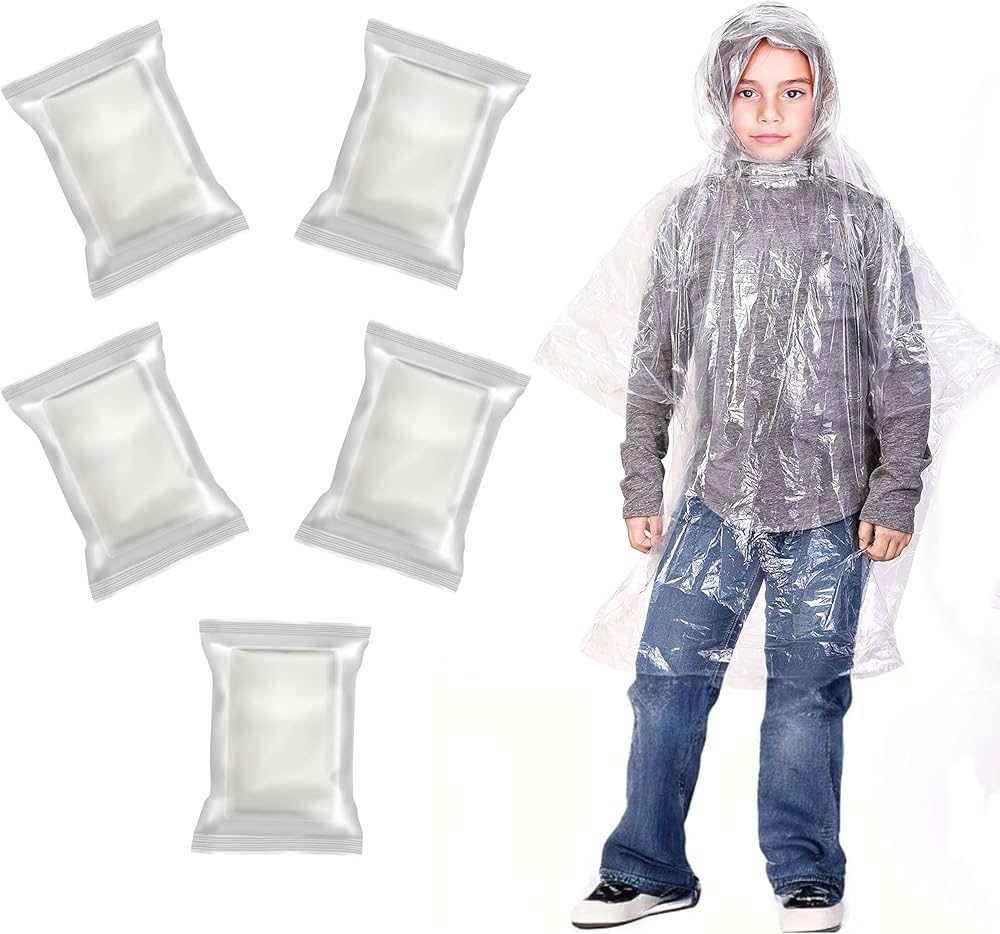 **CONVENIENT ONE-TIME USE:** Our rain ponchos pack and kids poncho rain covers are designed for disposable convenience. Perfect for sporadic rain showers or unforeseen weather, our disposable rain ponchos for kids and waterproof ponchos with hood offer hassle-free, single-use rain protection at your fingertips.