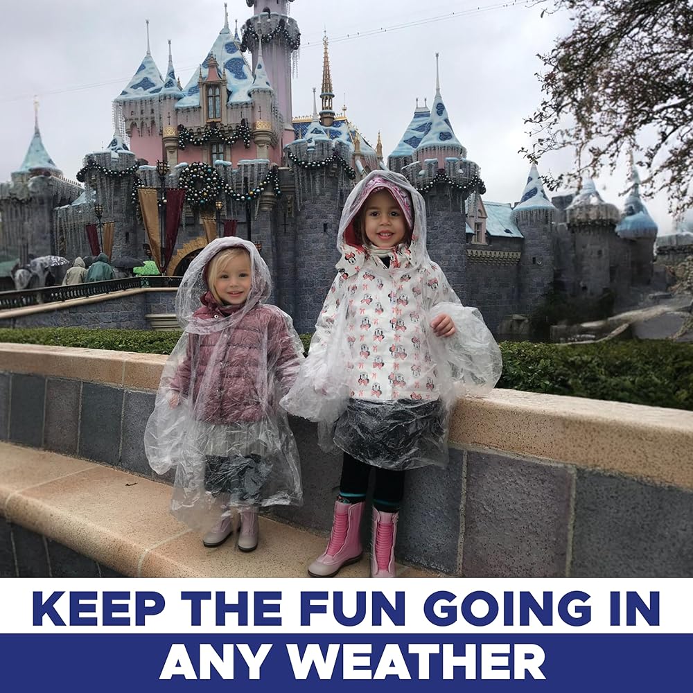 **COST-EFFECTIVE DRYNESS:** Our clear ponchos with hood are affordable yet effective. These emergency ponchos, including rain ponchos for kids disposable and reusable, deliver reliable rain protection without breaking the bank. Stay dry at outdoor events or theme parks without compromising your budget with our rain ponchos kids.