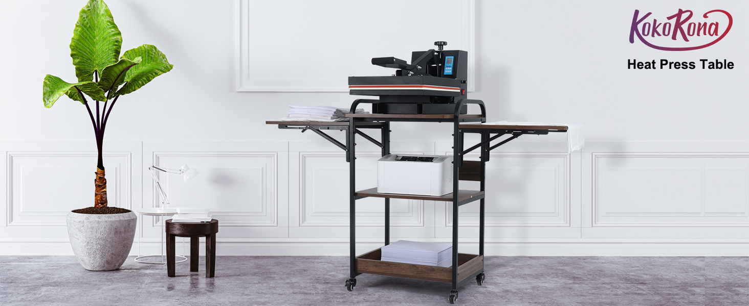 Kokorona 3 Tier Heat Press Stand, Movable & Foldable, Heavy Duty with Folding Working Table, Rolling Craft Station for Sublimation Print & Transfer Machine