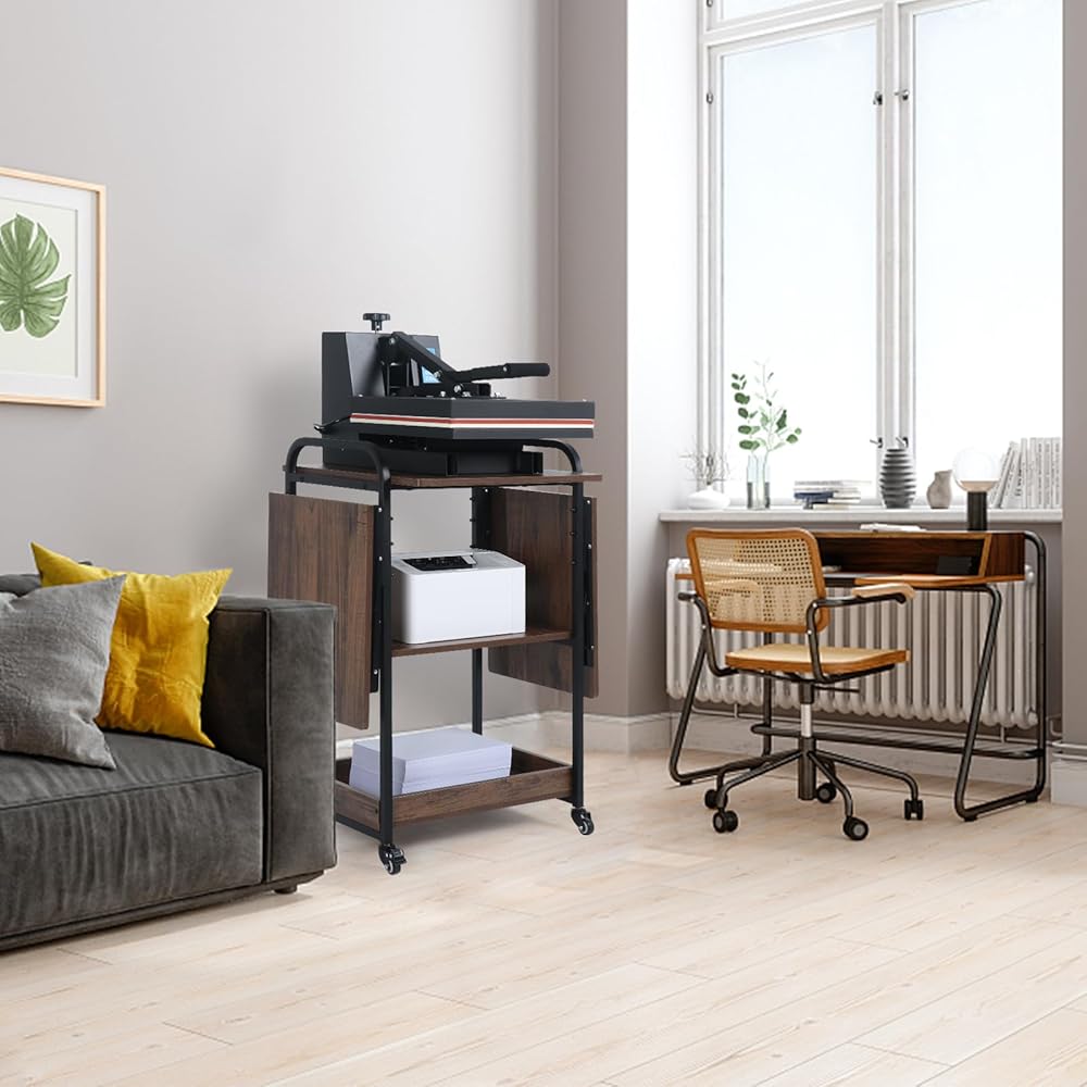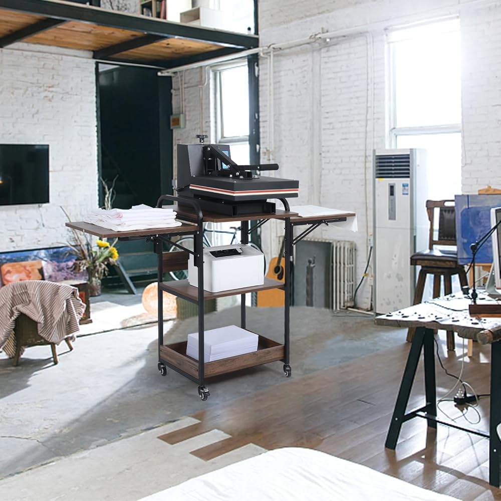 Three-Tiers Construction & Larger Storage Space: Specially designed for heat press machine. This heat press table features a convenient structure with three tiers of storage space to meet your needs. It perfectly holds a heat press; sublimation printer; sublimation supplies and accessories. The first-tier panel size is 20" × 20", large enough to accommodate most sizes of heat transfer press