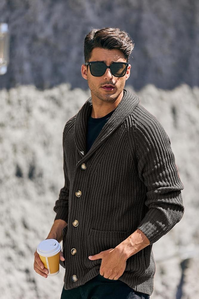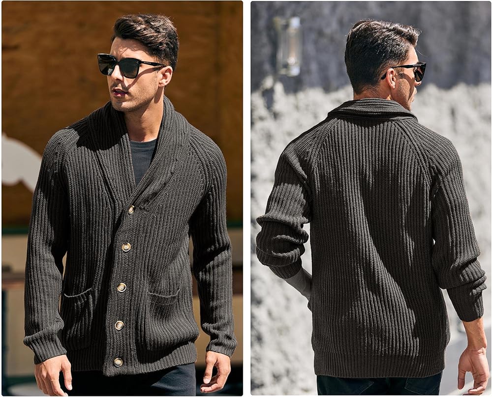FEATURES:Cardigan sweaters for men, shawl collar, cable knitted, diamond knitted, regular fit, long sleeve, side pockets, solid color, twist knitted, Soft thick sweater jackets keeps you warm and comfort.