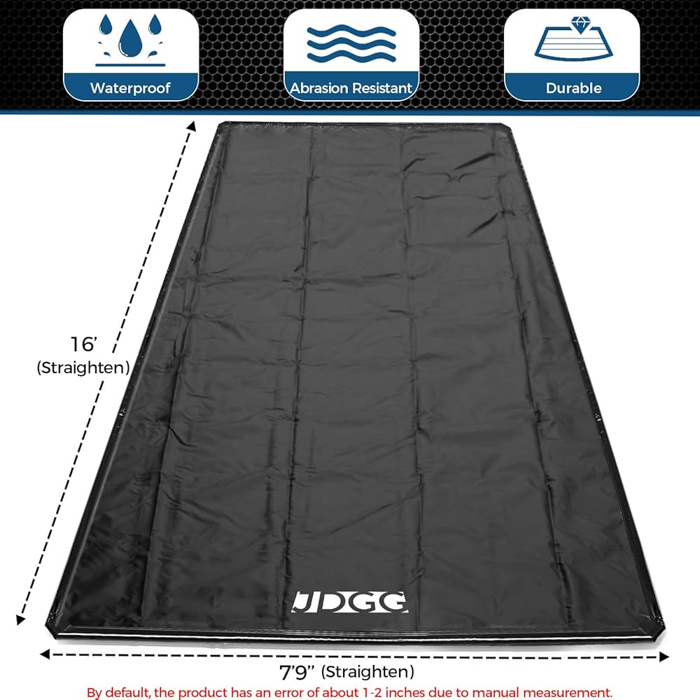 【Premium Material】This Garage Floor Mat is made of premium tarpaulin material with the features of waterproof, odorless and non-toxic. It is made with delicate workmanship and is highly durable. (Size: 7'9"x16'; Weight: 18 lbs)