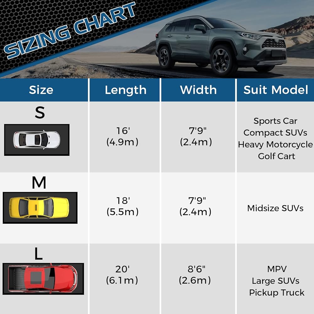 【Large Mat Covering】We offer 3 different size options that allow you to maximize your limited garage space and match the size of your garage or parking lot. Our Mat is perfect for most types of cars, SUVs and pickup trucks.