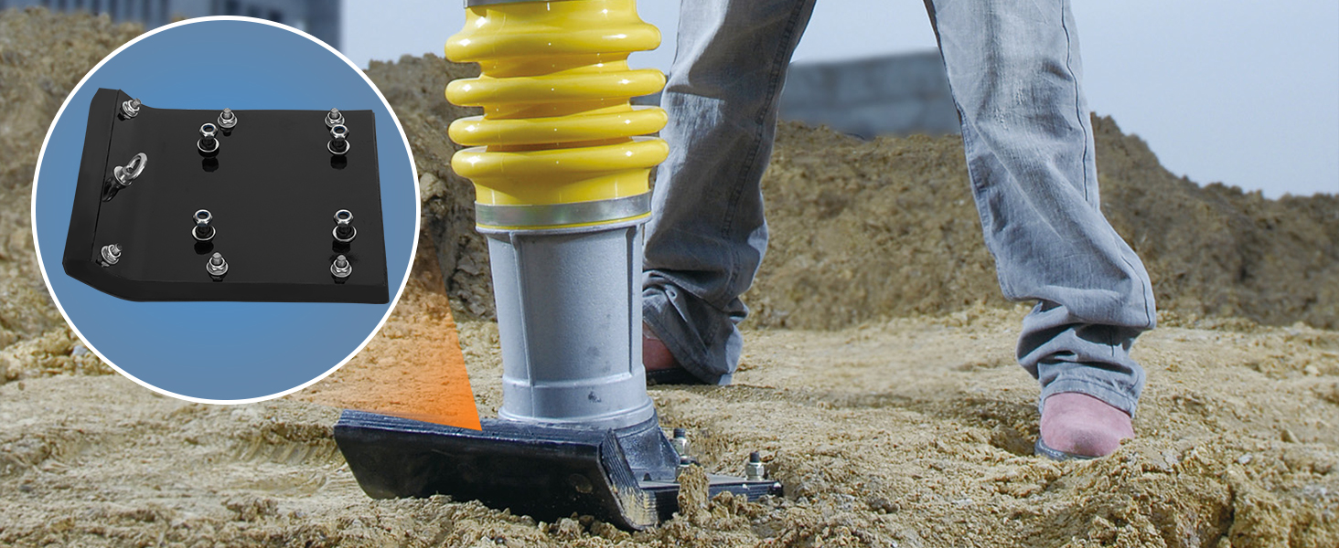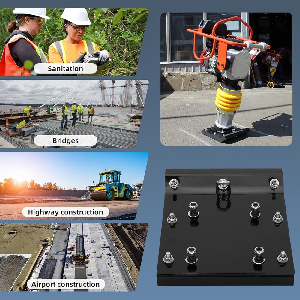 【Product Advantages】The thickened design of the base plate can increase the contact area with the ground, thus dispersing the impact force and reducing the wear and tear on the equipment, and it can also better transmit the impact force and improve the tamping effect