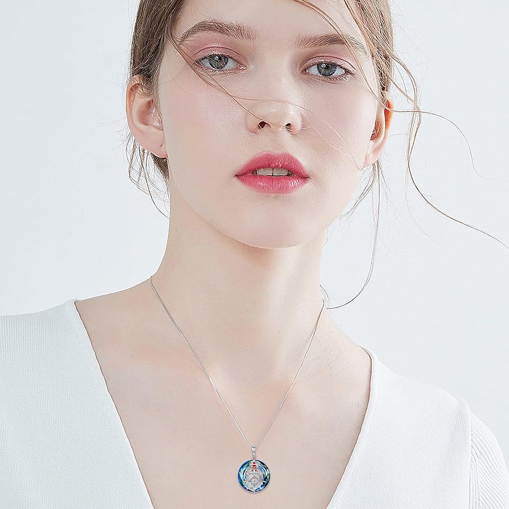 [Sterling Silver Compass Necklaces]: The compass necklace is made of S925 sterling silver, with exquisite polishing process,hypoallergenic, safer and refined.The bottom is inlaid with blue sandstone, which looks like stars in the night sky.