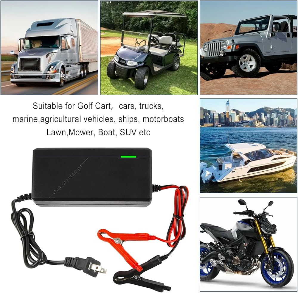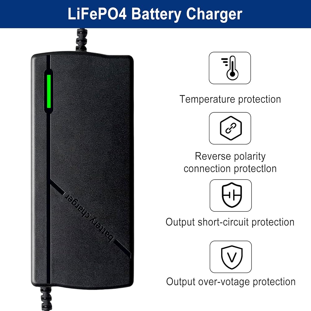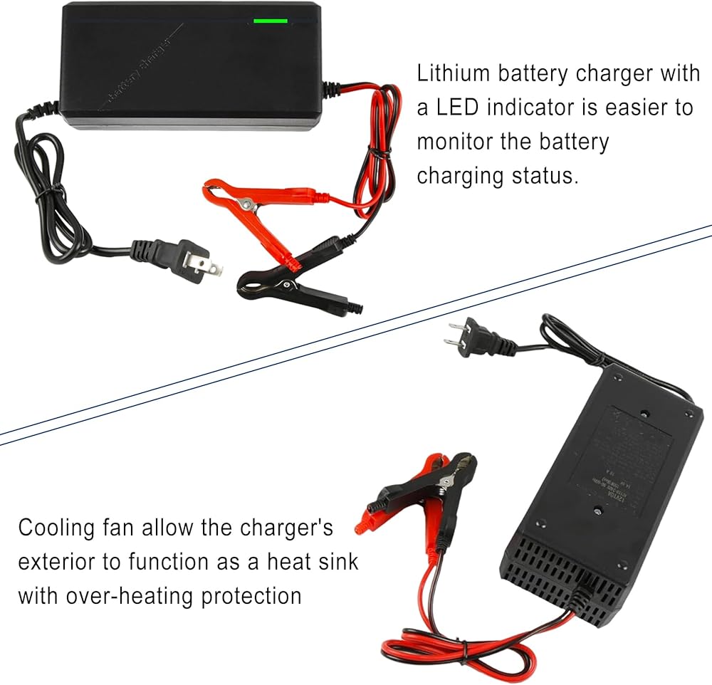 【Protection and Maintenance for Lithium Battery】: Quick and intelligent charger with many levels of safety against overvoltage, software overvoltage, overheating, short circuit, current limitation, and reverse polarity issues, all with a cooling system and refractory material that is safe and dependable. Secure and safe - Auto-shutdown once complete charge.