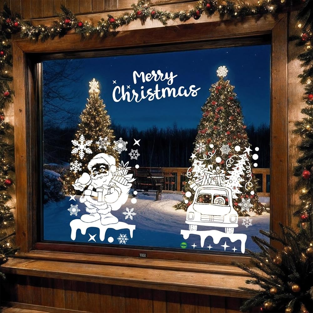Quality Christmas Window Stickers: These Christmas stickers are made of PVC materials. They could stick to window or smooth surfaces with water for a long time and don't fall off easily